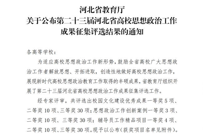喜报!必赢242net官网思政育人案例荣获河北省高校思想政治工作成果评选三等奖